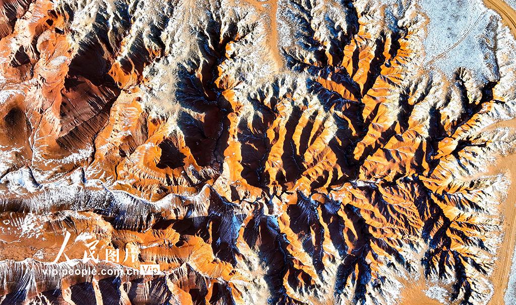 红崖台地位于内蒙古乌兰察布市四子王旗,山体呈现红色,随季节变化深浅交替,为丹霞地貌,南北长约15公里,东西宽约10公里,当地人称“大红山”,是四子王国家地质公园的重要组成部分。隆冬时节,雪色点缀下的红崖台地色彩浓烈,景色壮美。王正摄(人民图片网)