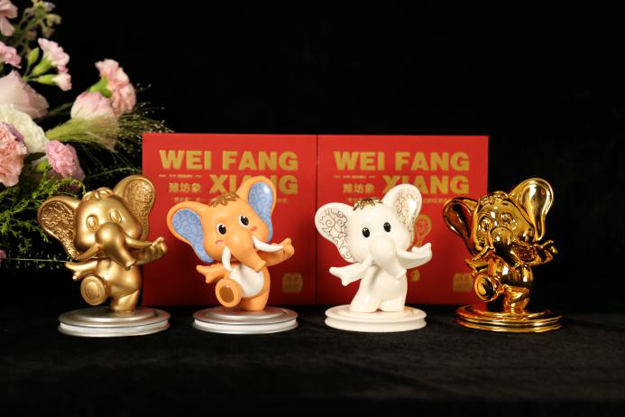 以潍坊象“祥祥”为原型的50余款文创产品布局交通枢纽专柜,相关雕塑落户市人民广场、火车站等地标,成为潍坊辨识度十足的城市文化符号。