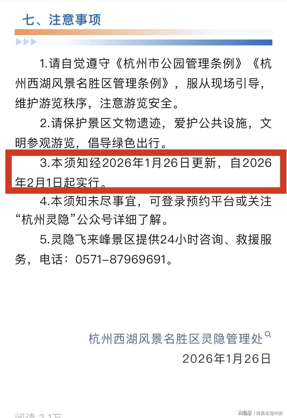 然而灵隐寺从2026年2月1日起,对爽约的游客,爽约一次30天内不能进入景区。