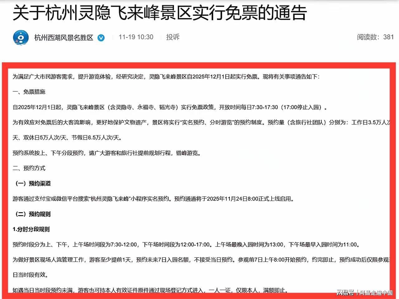 灵隐寺官方发布新预约规则如下: