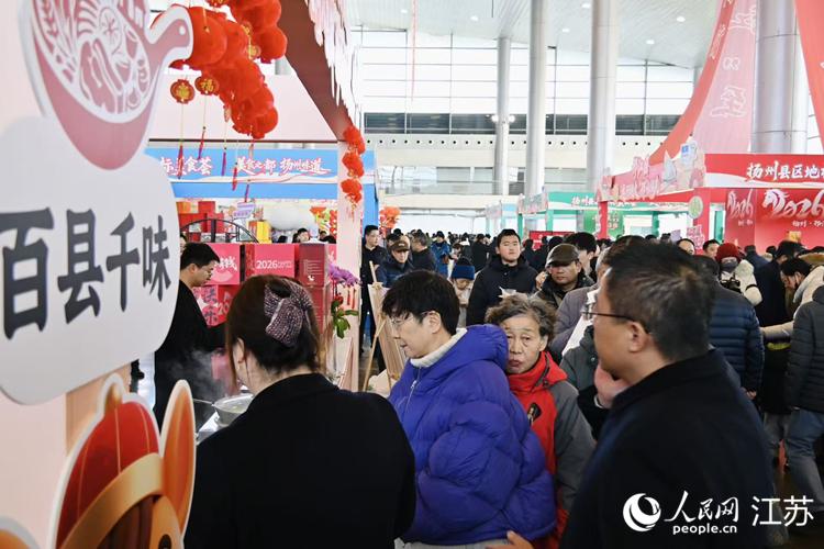 2026年“来扬州 过新年 行大运”活动上,市民排队采购年货。人民网 李静晔摄