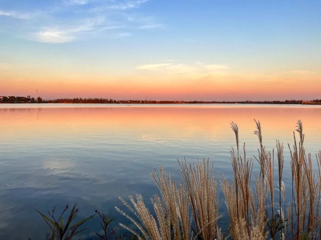祥符荡的黄昏日落,同样是不容错过的惊喜。清澈的湖水映着晚霞,偶有成对的鸳鸯游过水中央,漾起阵阵涟漪。迎着夕阳来一场骑行,眼前是大自然打翻的奇妙调色盘,所有的烦恼都在这光影里悄悄消散。