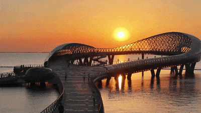 裹着清晨的薄雾站在湖畔,静待一轮红日冲破天际、喷薄而出。也可以在黎明前来到湖边步道的敞廊下,手捧一杯暖乎乎的香茗或热咖啡,坐等“天际霞光入水中,水中天际一时红”的那一刻。