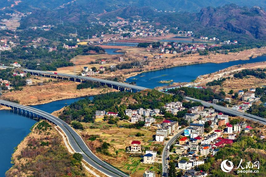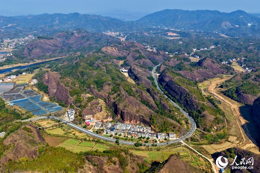 人民网兴国1月31日电 (记者朱海鹏)近日,江西省赣州市兴国县江背镇华坪村,公路蜿蜒穿梭于山峦间,与河流、田野、村舍、葱郁远山相映成画。