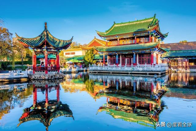 翠湖的风骨,藏在那些历经岁月沉淀的建筑里。湖心岛的观鱼楼,始建于清嘉庆年间,是云南园林艺术的代表之作。这座楼阁的命运,与翠湖的变迁紧密相连。1934年,云南省主席龙云主持大规模整修,在观鱼楼南北两侧各增建一座三层八角、琉璃覆顶的亭阁,华丽的造型与古朴的主体相映成趣,既保留了中式园林的雅致,又暗含了民国时期中西风格融合的痕迹。站在观鱼楼上凭栏远眺,阮堤唐堤纵横交错,湖面碧波荡漾,岸边人声隐约,昆明城的繁华与静谧在此完美交融。
