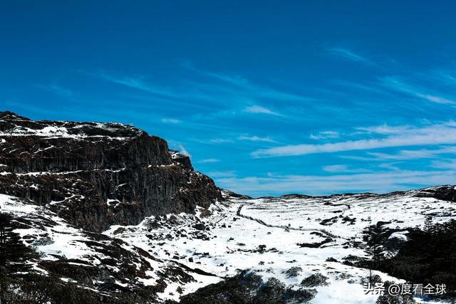 随着海拔攀升,气温渐降,半湿润常绿阔叶林过渡为温凉性针叶林,急尖长苞冷杉在这里扎根生长,上千棵胸径超50厘米、树龄近160年的古树蔚然成林,其中一棵直径1.5米、高50米的冷杉,需要三人携手才能环抱,它见证了这片山林百年的风雨变迁,也成为轿子山生态完整性的活见证。再往高处,寒温灌丛与草甸取代了森林,视野豁然开朗,远处的雪峰与脚下的野花相映成趣,到了海拔3500米以上,残存的现代冰川与古冰川遗迹交相辉映,即便在盛夏,也能邂逅皑皑白雪,感受四季轮回的奇妙。