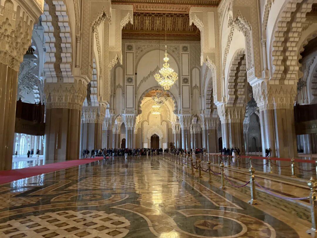 行程的每一天,都被安排得充实而不匆忙。当地导游总能提前做好万全准备,小到每日的天气提醒、穿搭建议,大到景点的历史背景讲解、当地习俗的温馨提示,事无巨细,面面俱到。凭借着对摩洛哥的熟稔,带着我们避开拥挤的人潮,找到那些藏在深巷里的小众美景。在白色之城卡萨布兰卡,我们迎着晨光走进哈桑二世清真寺,看阳光透过镂空的雕花窗,在地面投下斑驳的光影;在红色之城马拉喀什,我们穿梭于德吉玛广场的喧嚣中,看杂耍艺人的表演,闻着路边摊烤羊肉的香气,感受着北非集市的独特活力。