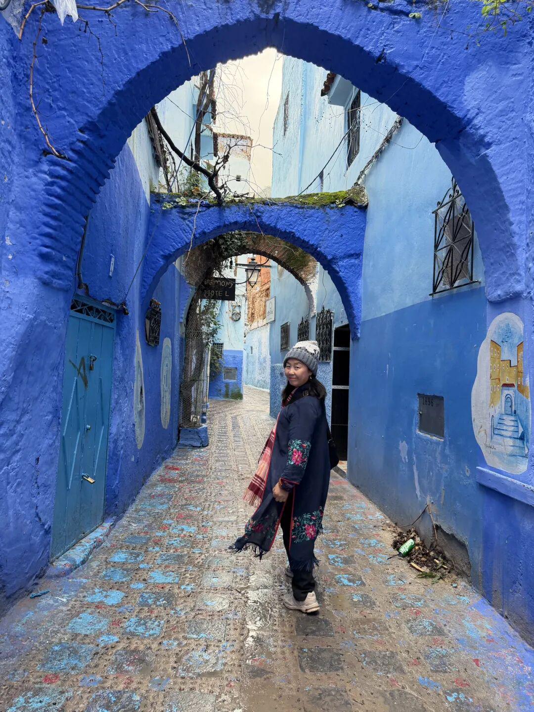 从舍夫沙万的蓝色街巷,到撒哈拉沙漠的金色沙丘,每一段路程都充满了惊喜。记得在前往撒哈拉的途中,车辆行驶在蜿蜒的山路上,付林女士担心大家疲惫,不仅准备了零食和饮用水,还组织大家唱歌互动,让车厢里始终充满欢声笑语。夜晚宿在沙漠帐篷里,我们围坐在篝火旁,听着当地柏柏尔人的鼓点,抬头是从未见过的璀璨星空。李导贴心地为我们讲解星座,还帮大家拍下了一张张与星空同框的绝美照片。