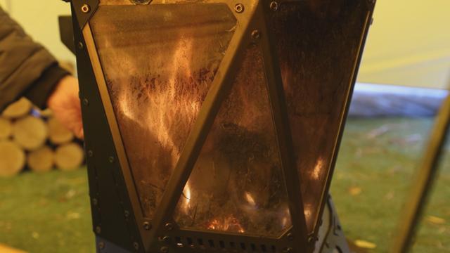 冬季露营帐篷里用于取暖的柴火炉