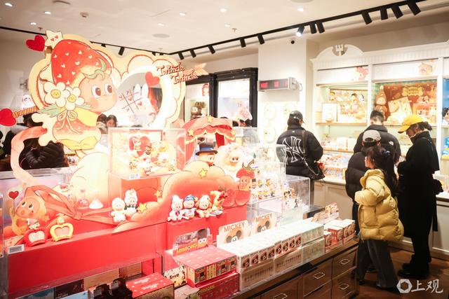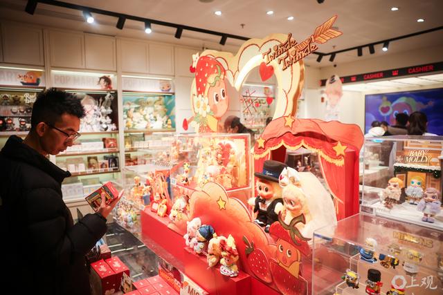 人们在前滩太古里内的泡泡玛特POPMART门店内选购商品。