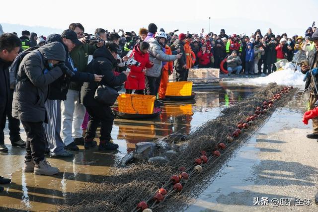 鱼把头作为仪式的核心,更是渔猎文化的传承者。他们熟悉秀湖的每一处水域,知晓冰层厚度、鱼群迁徙规律,仅凭经验就能判断下网位置与起网时机。从凿冰、布网、走杆、引线到收网,每一个环节都暗藏学问。冰眼的间距、渔网的深度、收网的力度,都需要精准把控,稍有不慎便可能影响渔获。数十名壮汉合力收网时的号子声,更是传承千年的劳动赞歌,节奏明快的号子不仅能统一动作,更能凝聚力量,将人与自然博弈、与同伴同心的场景,演绎得淋漓尽致。