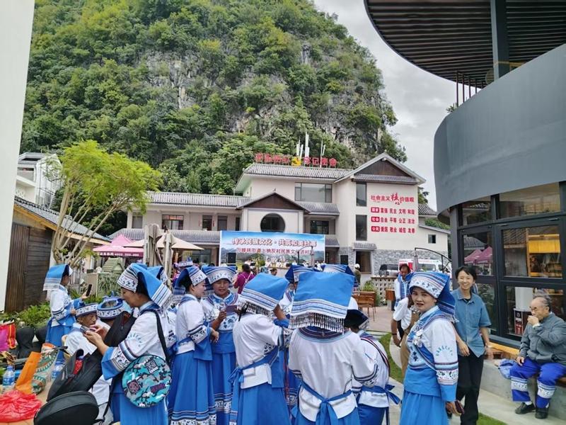 在万峰林、峰林布依、马岭河峡谷等景区,布依族“八音坐唱”、苗族“板凳舞”、彝族“阿妹戚托”等民族歌舞随处可见,常态化表演,蜡染、扎染、木雕、手工艺等非遗代表性项目传承人现场展示技艺。游客情不自禁加入到跳舞行列,亲手制作民族工艺品,沉浸式体验浓郁的民族文化气息,共同融汇成你中有我、我中有你,多元一体、不可分割的命运共同体。