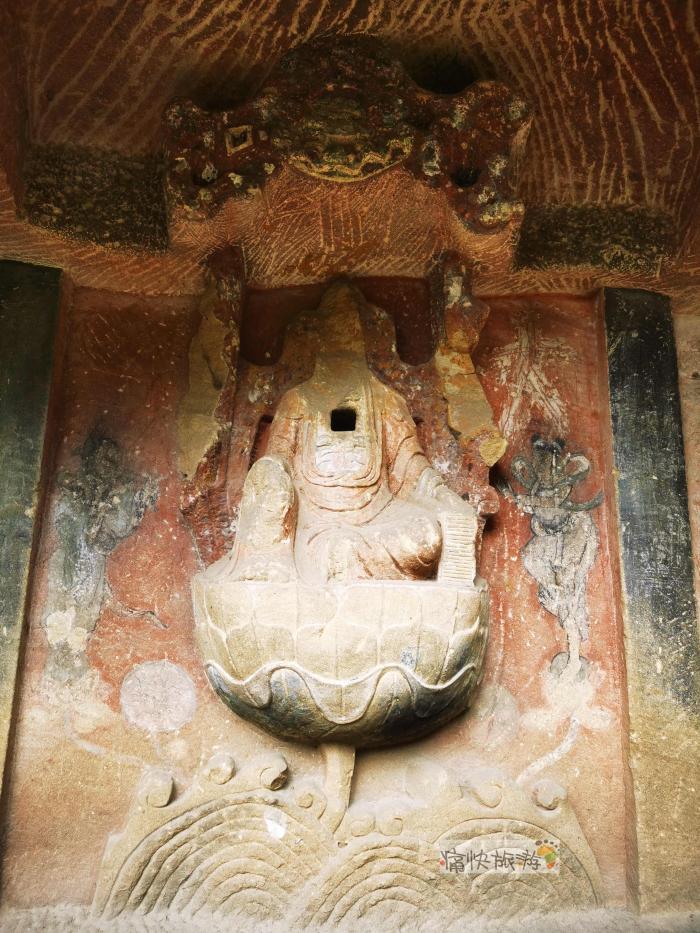 摩崖造像下方还有一尊无头造像,不知是不是原来庙宇的遗存。