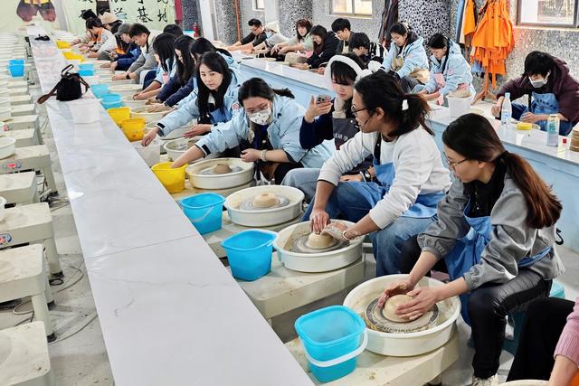 全国台联第三十二届台胞青年冬令营江西分营营员体验陶瓷制作(江西省台联供图)