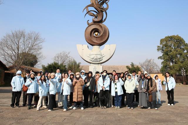 全国台联第三十二届台胞青年冬令营部分营员在良渚古城遗址公园合影(摄影:霍建阳)
