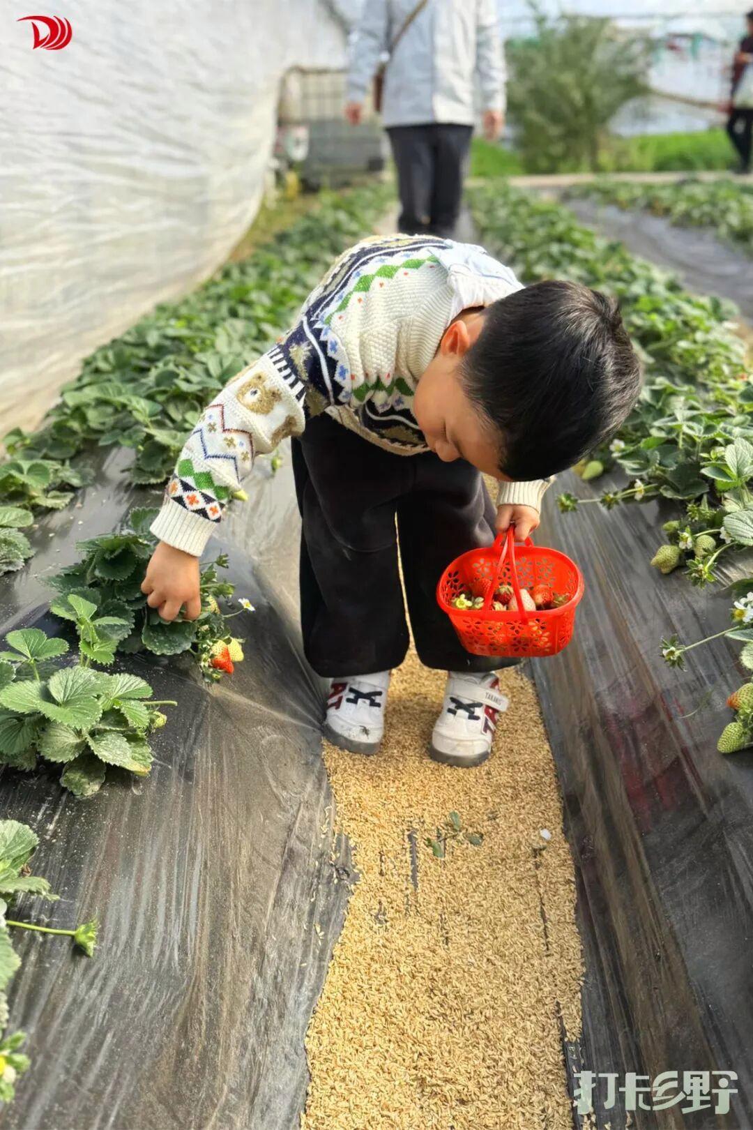 娃一边摘一边偷偷吃,现摘的草莓在衣服上擦擦就入口,汁水在嘴里炸开的瞬间——冬天的幸福感拉满了!