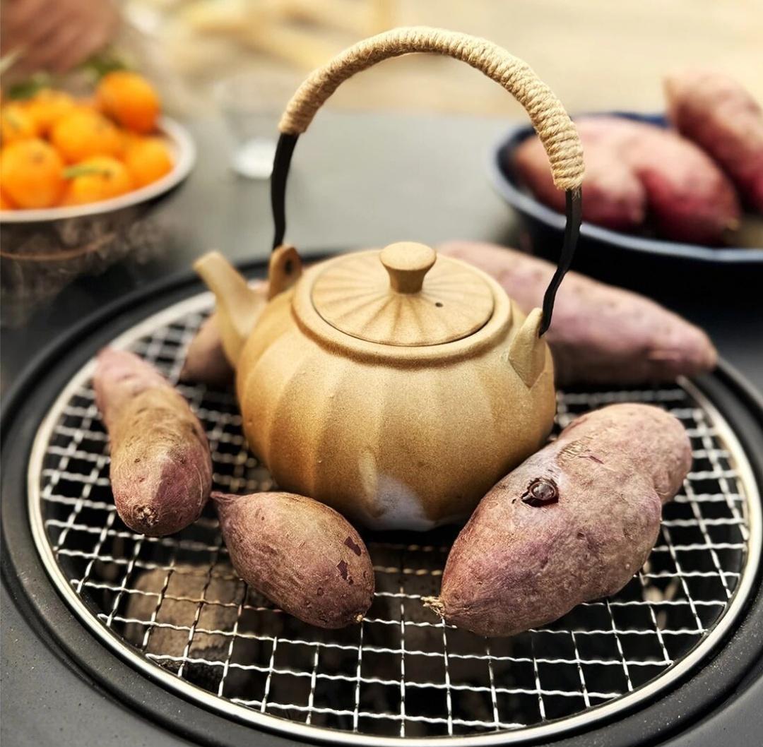 生起炭火,架上陶壶。不一会儿,菊花在沸水中舒展,菊花的清香缓缓溢出,混着草木气息,一层淡淡的、温暖的食物甜香笼罩下来。