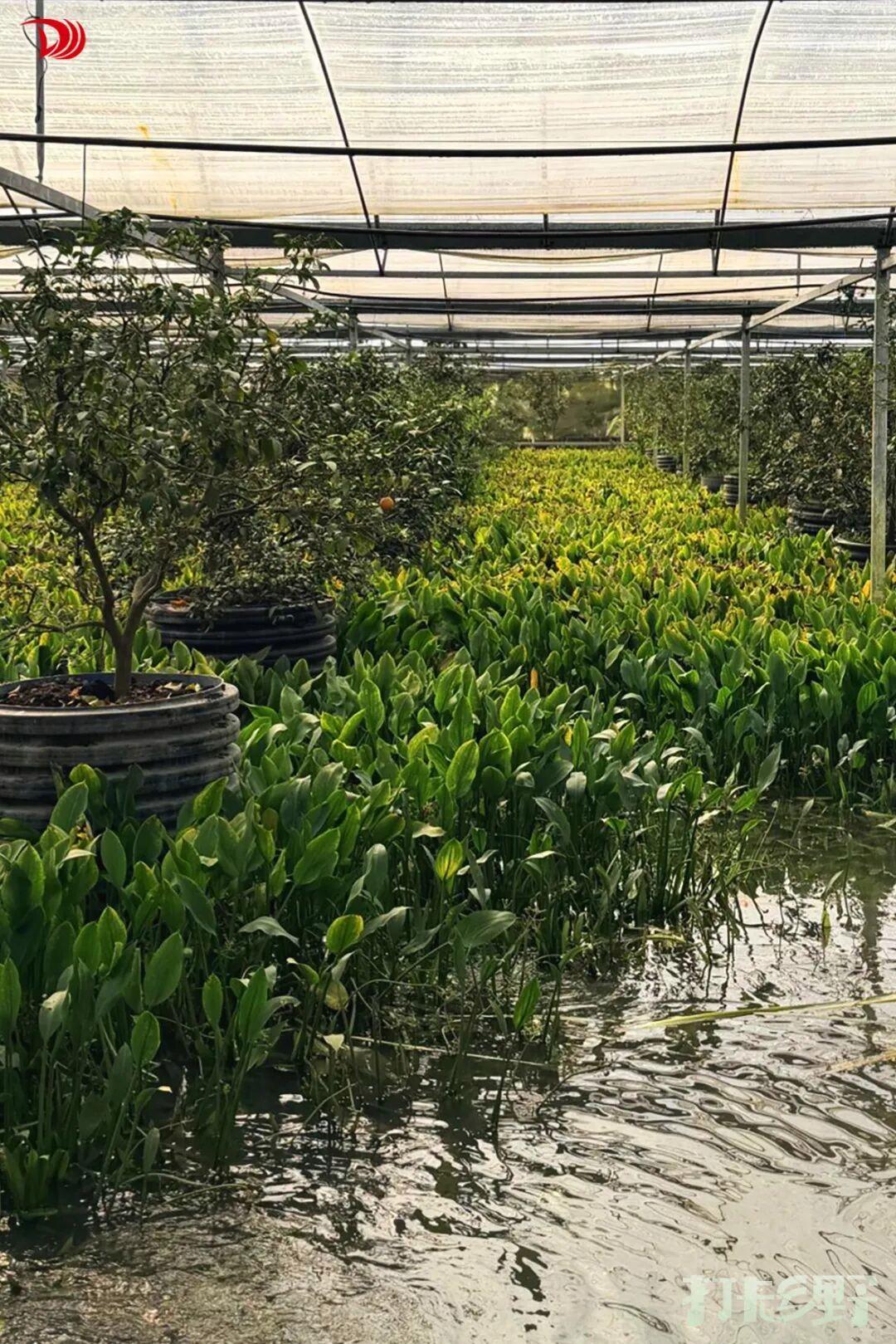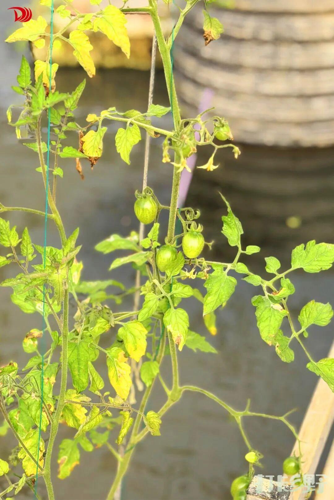 温室的设计充满巧思:清澈的水池中,小龙虾自在游弋;水面上方,立体栽培的果蔬郁郁葱葱。可以看到青涩的香蕉成串垂下,“红美人”柑橘点缀在绿叶之间,小番茄如宝石般累累悬挂。整个空间温暖而通透,层次丰富,像一个自成一体的生态小世界。