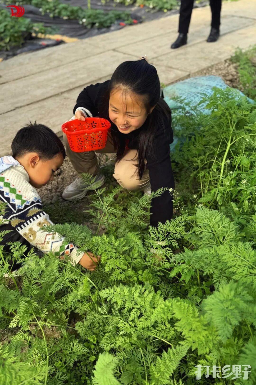 摘完草莓,转身到对面拔几根胡萝卜。