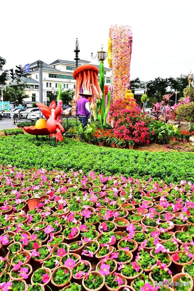 有人举着手机蹲在花田边缘,等待阳光掠过花瓣的最佳角度;有人牵着孩子的手,指着尚未完全成型的鹿形图案讲述那个跨越千年的爱情故事;还有游客索性把行李放在路边,让这片街头花海成为抵达三亚后的第一张合影背景。没有刻意的围挡,没有收费的标识,一处街头景观就这样自然地融入市井与旅途,成为三亚迎接新春的独特注脚。