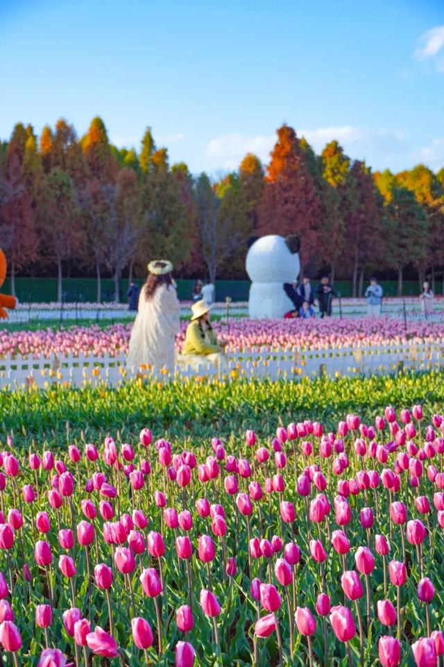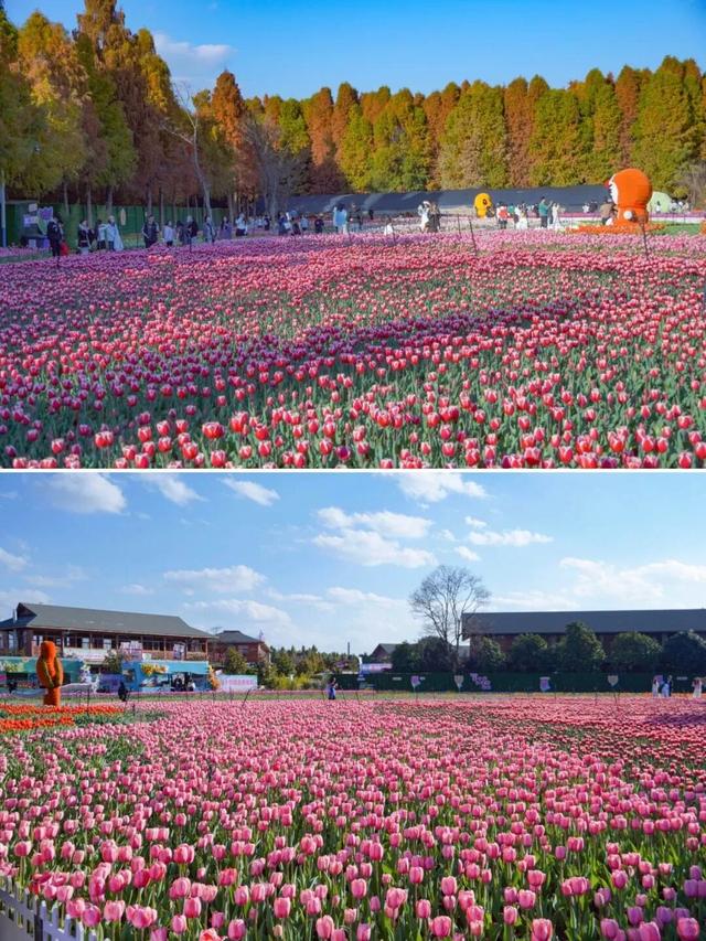 2026年的郁金香花展延续了往年的匠心打造,精选荷兰进口种球,21个特色品种、逾100万株郁金香绵延20亩土地,规模更胜以往。