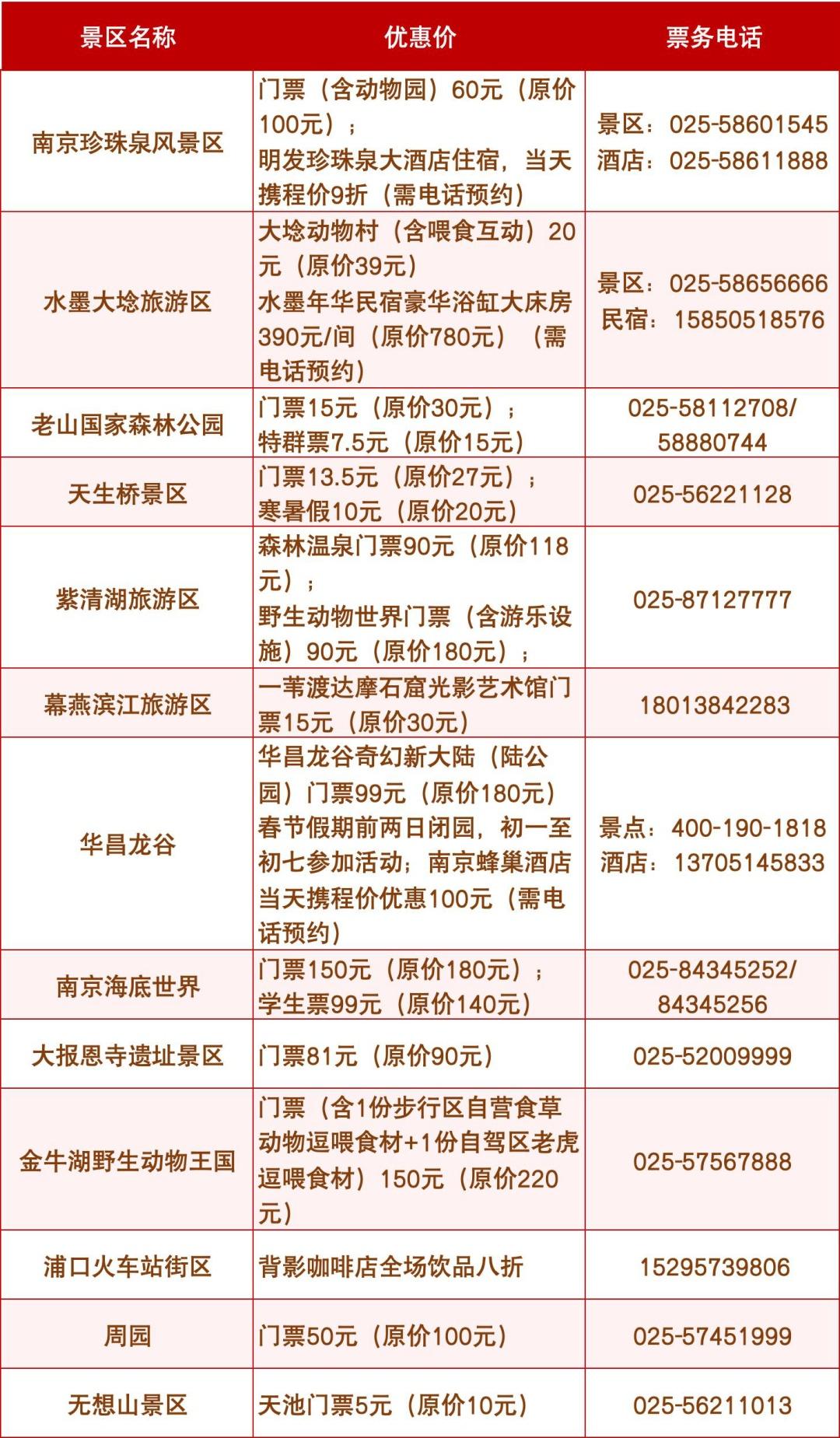 2026年2月15~23日(2026年春节期间),旅客通过铁路抵达南京后十日内,凭本人有效身份证件及抵达南京的火车票(南京站、南京南站、江宁站、江宁西站、仙林站、溧水站),在相关景区(点)现场购票,可以享受包括门票、旅游项目、住宿等特别优惠。