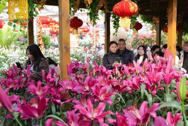 4000㎡的智能温室内,5万株、40个品种的百合盛情绽放,汇成一片烂漫花海。本次“迎新春百合花展”将百合花卉艺术与春节元素巧妙融合。展区以红、金为主色调,百合与灯笼、福字、中国结交相辉映,形成“百花迎春,万福临门”的吉祥画卷。游客不仅可欣赏百合竞放,还可在“花开富贵”“锦上添花”等特色打卡点与花卉合影,感受“赏百花、纳万福”的游园体验!