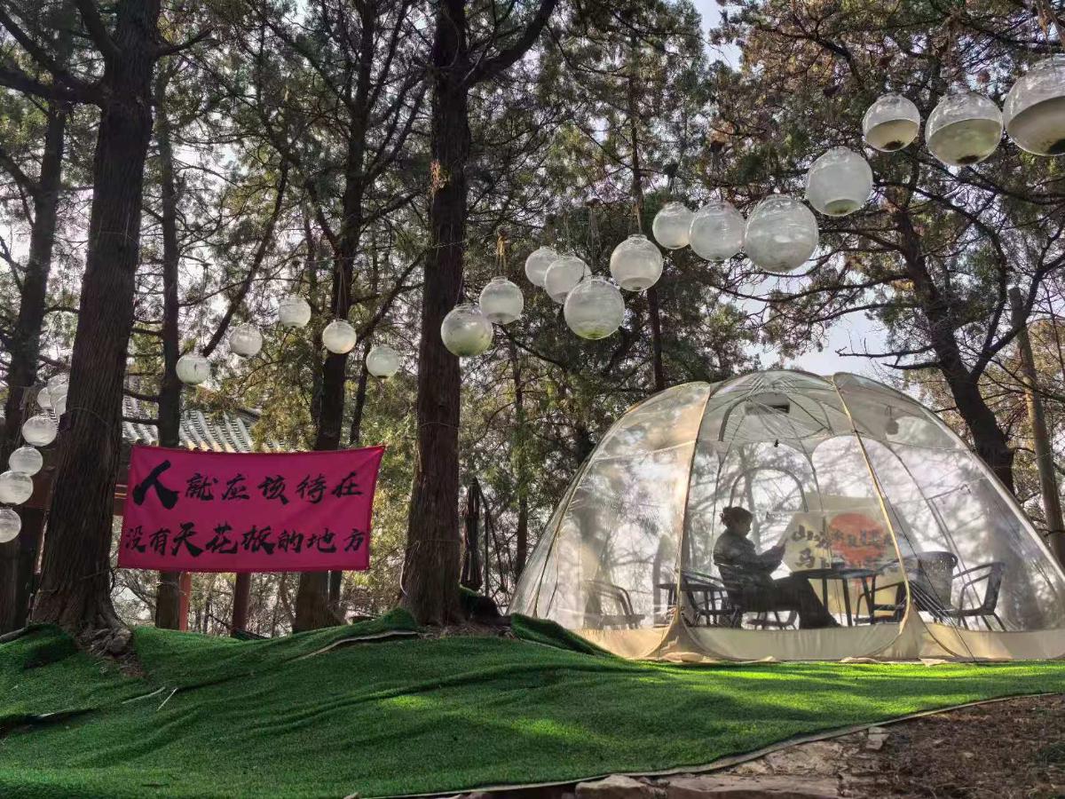 泉水形成的冰瀑,没有天花板的房子,喜庆盈盈的露天餐厅,还有清新的空气,冬日的暖阳...... 灵岩寺景区静候游客的到来。 艾岱 摄