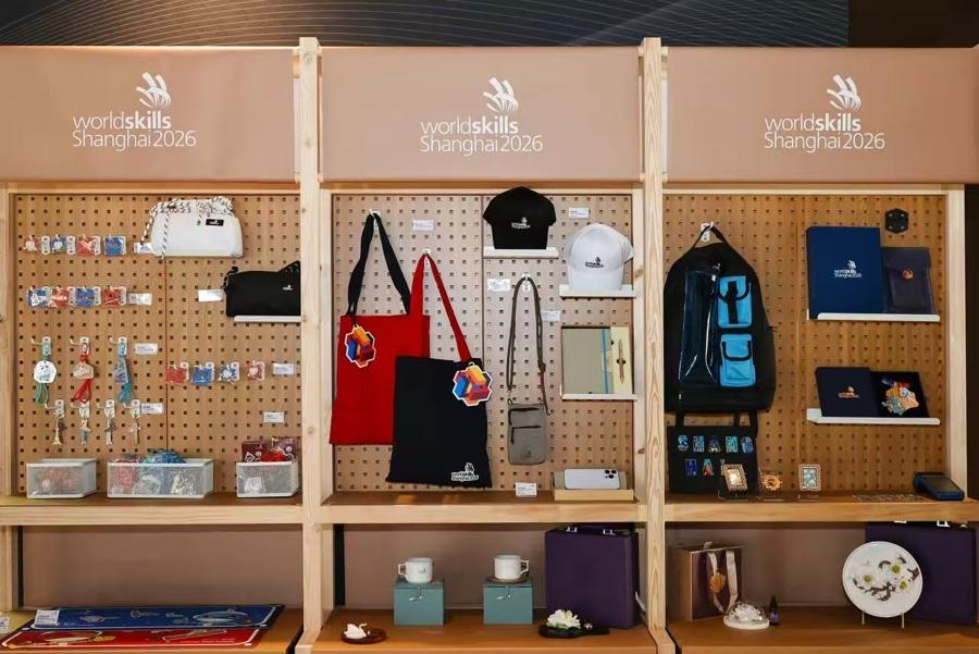 同样引人注目的是世赛特许商品预览展区。徽章、服饰、文创产品等集体亮相,将外滩建筑、石库门风情等上海元素与技能竞赛符号融合。同时,部分热门商品开启“限量预览”通道,支持即时预订。