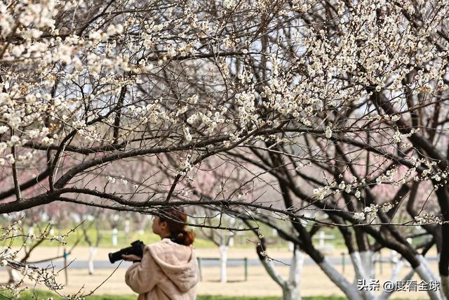 市民们的到来,让梅园充满了烟火气。有人举着手机,在花枝间寻找最佳角度,试图将这份春日美景定格;有人带着孩子,指着枝头的梅花轻声讲解,让孩子在触摸与观察中,感受自然的变化;有好友结伴而行,一边赏梅一边闲谈,笑声随着花香飘散;有老人坐在长椅上,望着枝头繁花,眼神里满是平和与惬意。大家不约而同地放慢脚步,卸下生活的疲惫,在梅香中享受这份难得的闲暇。有人特意换上浅色系衣物,与梅花相映,让照片更添雅致;有人带着汉服,在古意盎然的景致中定格身影,将江南春日的韵味诠释得淋漓尽致。阳光正好,梅香袅袅,人与人、人与花之间的温柔互动,构成了一幅鲜活的江南早春图景。