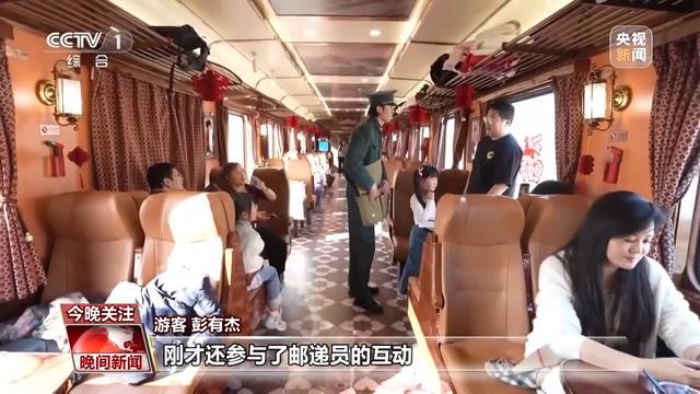 为了提升旅客出行体验,铁路部门推出了“雪”字号、“静”字号、“宠”字号特色列车服务。今年,北京到天津之间还新增了一列特殊的文旅专列。这趟由绿皮火车改造而来的“津旅时光号”,将每节车厢设置不同主题,全程约100分钟,让游客在沉浸式演艺氛围中来一场奇幻之旅。