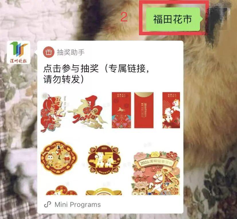 3、在对话框中输入关键词“福田花市”,获取链接参与抽奖