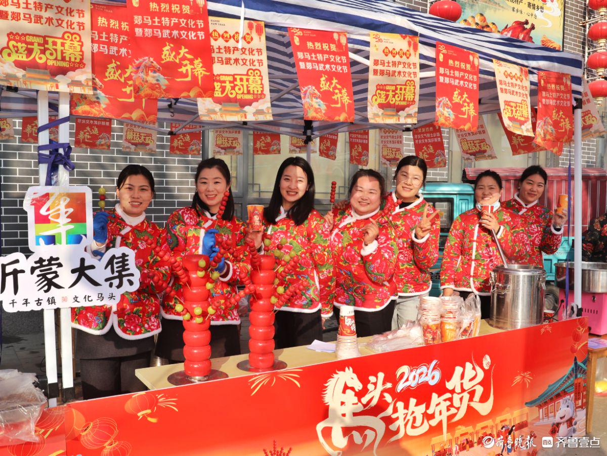 2月5日,农历腊月十八,郯城县马头镇第三届郯马土特产文化节暨武术文化节在北水门文化广场盛大开幕。千年古镇张灯结彩,迎春氛围浓郁,诚邀八方宾客品尝美食,选购好物,观赏武术表演,热热闹闹过大年。 高军 摄