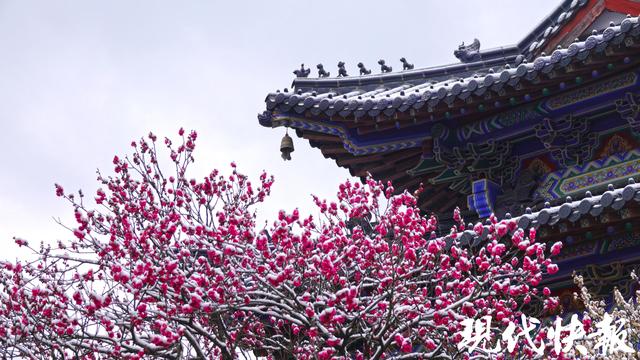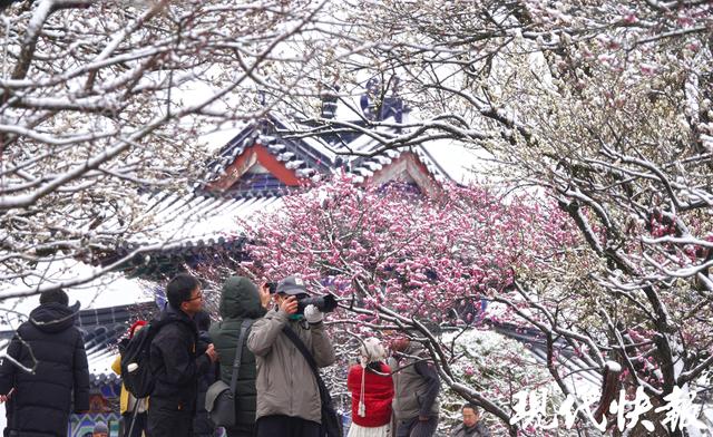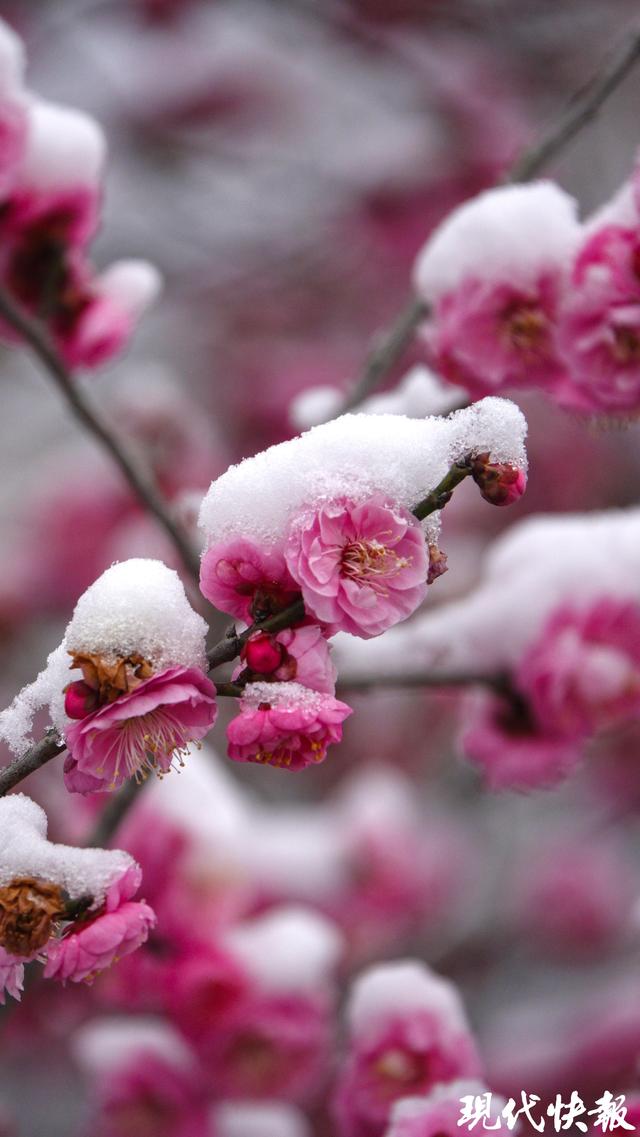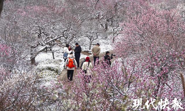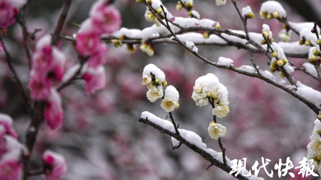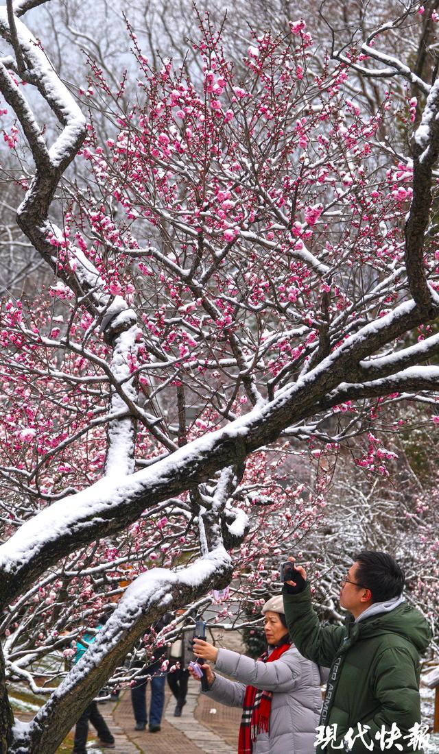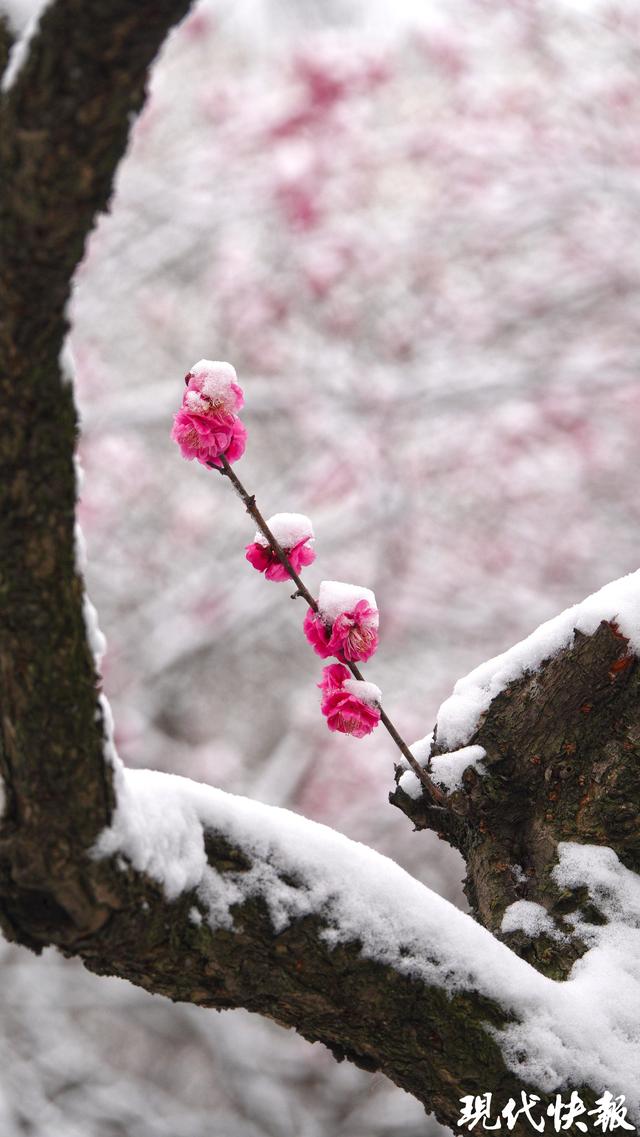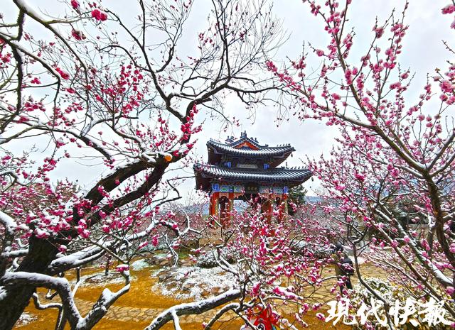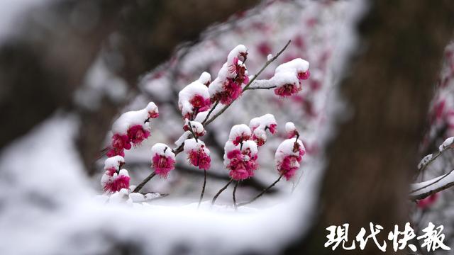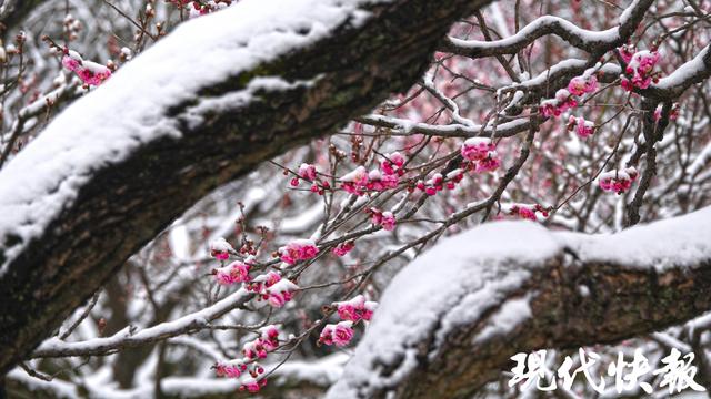 现代快报讯(记者 裴诗语/文 赵杰/摄)雪落金陵,梅开满山。2月7日,一夜飞雪过后,南京梅花山银装素裹,三万余株梅树迎雪挺立,虬曲的枝丫凝霜挂雪,却挡不住梅花的灼灼生机。