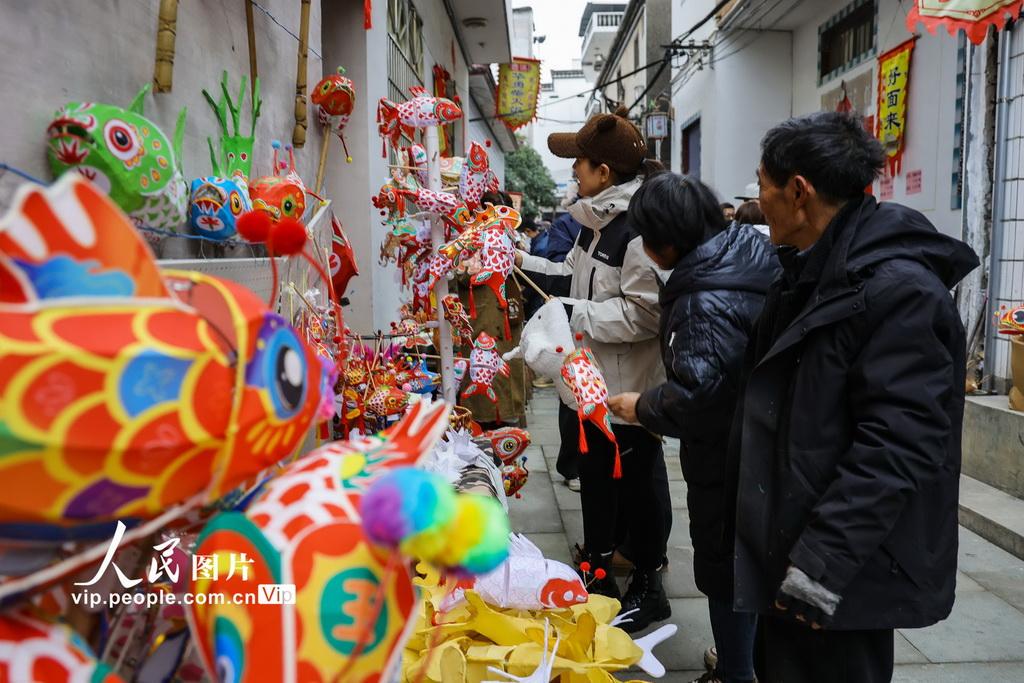 2026年2月7日,安徽省黄山市歙县北岸镇瞻淇村鱼灯巡游上演,现场人声鼎沸,热闹非凡,吸引众多游客前来感受徽州年味。樊成柱摄(人民图片网)