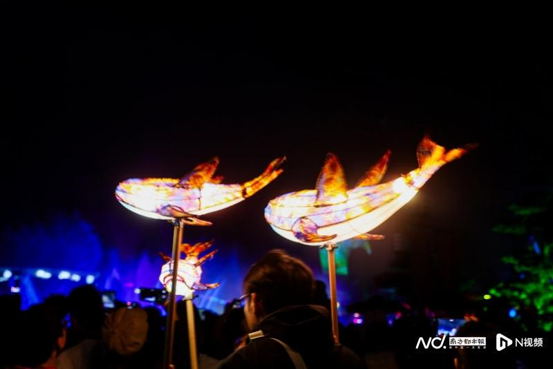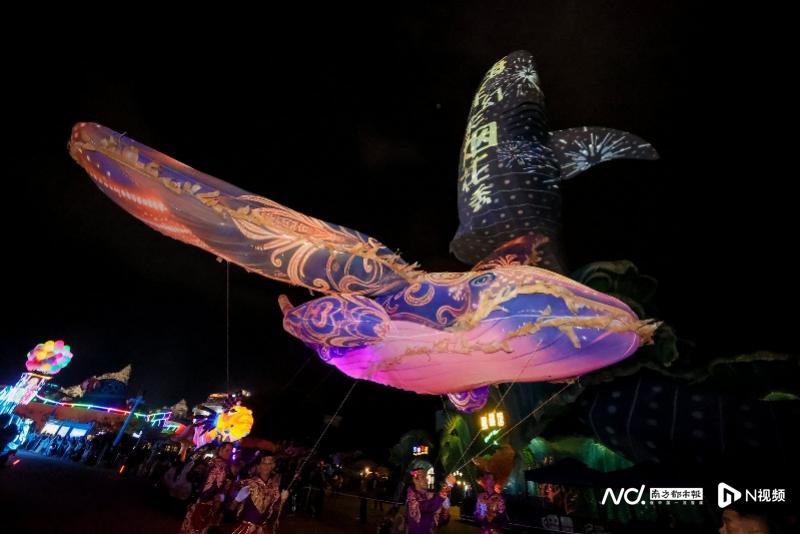 为全方位烘托艺术节的新春氛围,横琴长隆海洋王国已完成园区整体焕新升级,将海洋场景打造成无垠宇宙,星光般的鱼群在水中穿梭如梦,与巨型鲲鹏空飘、璀璨鱼灯交相辉映,让海洋奇观与中式神话深度交融。夜幕降临,手提鱼灯的游客翩然穿行,流光溢彩的鱼灯队伍蜿蜒游走于园区主干道,灯光摇曳、人影错落,让市民游客沉浸式体验传统年俗的独特韵味,在深海秘境中感受别样新春欢喜。