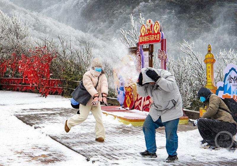 2月8日,重庆市南川区金佛山景区迎来了今年立春后的第一场瑞雪,积雪松软,游客们在雪地里打雪仗、玩雪,度过了快乐的周末假期。