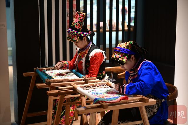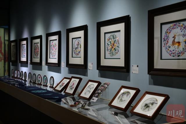 天府艺境国绣馆内,工作人员展示刺绣技法。