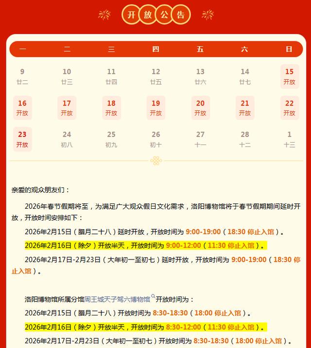 春节的脚步越来越近啦!提醒准备去洛阳游玩的朋友,洛阳这些免费博物馆需要提前预约!