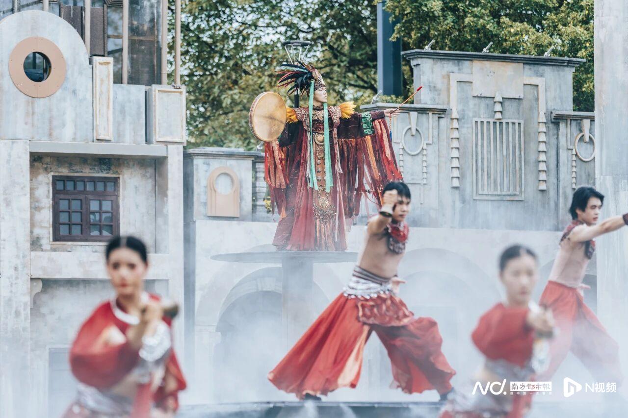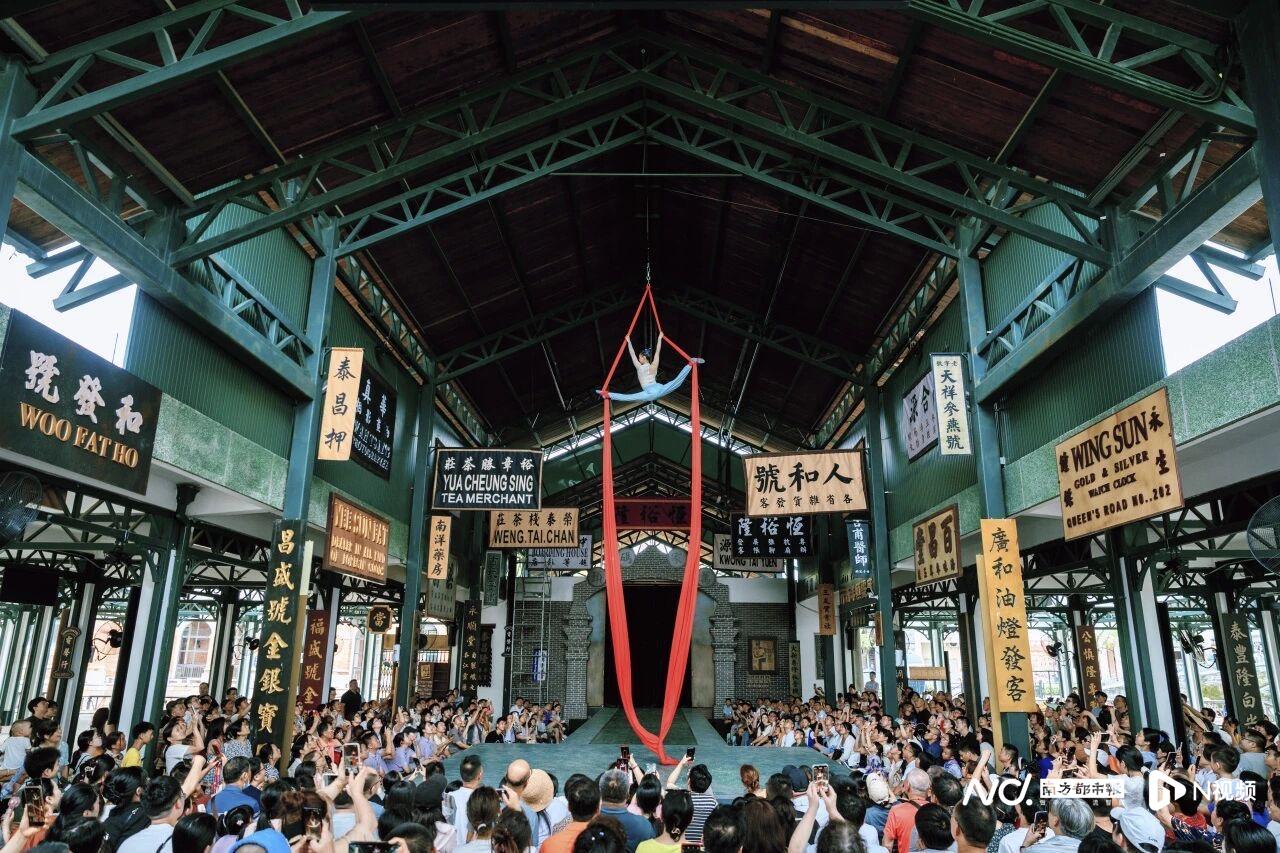 日夜皆有好戏,沉浸式演艺在江门赤坎度假区轮番上演。作为广东省唯一的世界文化遗产开平碉楼村落的重要组成部分,赤坎古镇新空间首创的“4+2+2+N”演艺矩阵,入选“广东省演艺新空间展演季”。