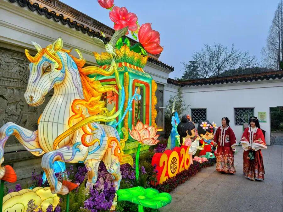 经营管理科科普员何诗韡介绍,今年共打造了9组灯组,以“白驹过隙”为意象,融合古猗园特色十二花神IP与生肖马元素,展现童年、青年、壮年、暮年的“人生四时”主题:“今年灯组布置围绕着古猗园老园的游园线路,有些点位结合水景、有些点位结合建筑,主要想突出古典园林的特色景观景色,让园林的氛围更加有年味。”