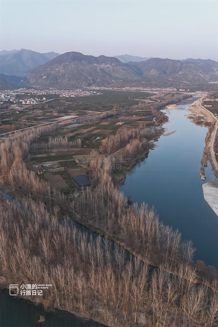 第一眼见到湑水河,澄净湛蓝。虽是冬日,两岸树木早已萧瑟,却掩不住远山的苍茫、近水的灵动。河水静静流过老堰、村舍与田埂,像一幅摊开的水墨,淡得很,也耐看得很。