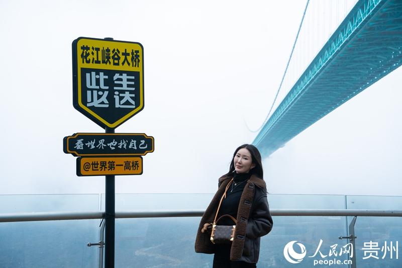 外国游客打卡“世界第一高桥”。人民网 阳茜摄
