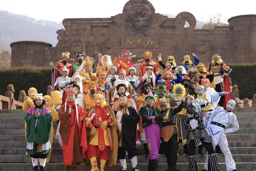 图为演员在花果山景区大门口留影。云台山景区管委会供图