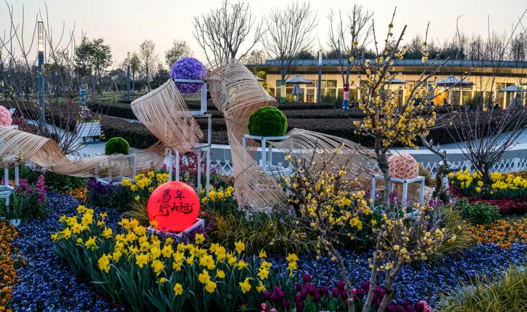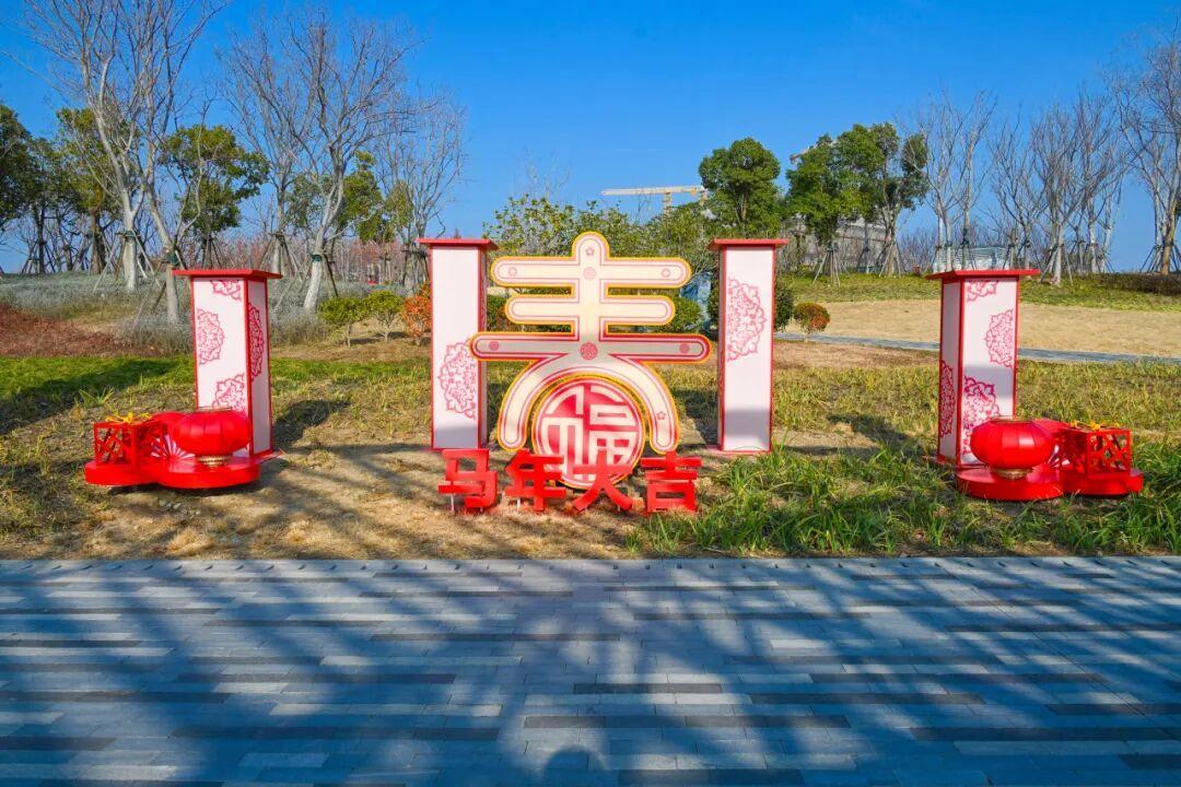 为营造欢乐祥和的节日氛围,公园全面更新景观布置。水仙、三色堇等时令花卉与红果组合成明亮鲜艳的花卉小品。巨型的“春”“福”字装置引人注目,配以卡通骏马、红灯笼及生肖装饰,将传统年味和谐融入园林之中。冬日园内生机盎然,处处洋溢喜迎丙午马年的热烈气氛。