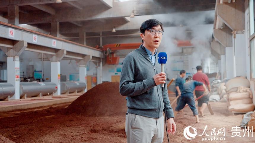 探访团在仁怀酒企作现场报道。人民网记者 涂敏摄