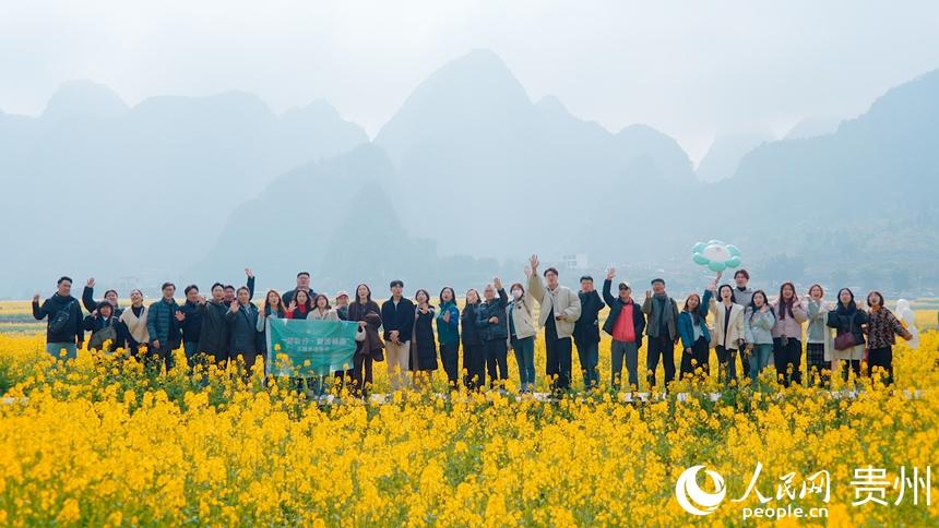 探访团在万峰林合影。人民网记者 涂敏摄