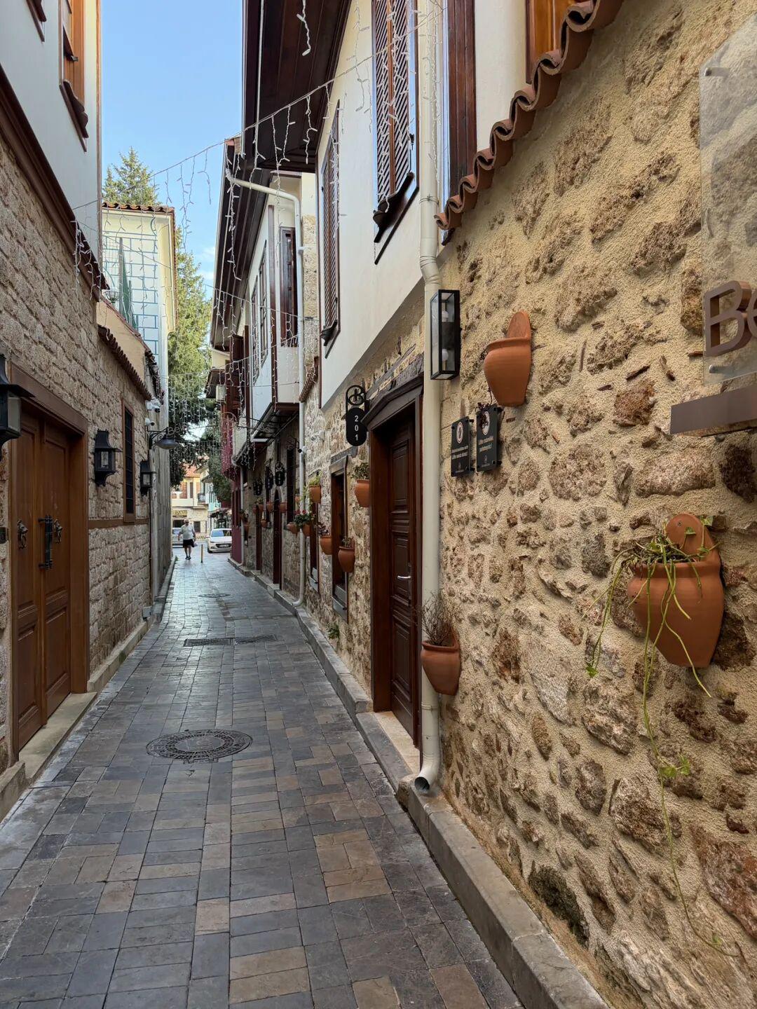 安塔利亚老城区,土耳其人称作卡莱伊奇,依偎在地中海蔚蓝的怀抱里,像一本被岁月温柔翻阅的史书。这里没有都市的喧嚣,只有石板路、红瓦白墙与千年古迹,将罗马、拜占庭、奥斯曼的故事静静诉说。