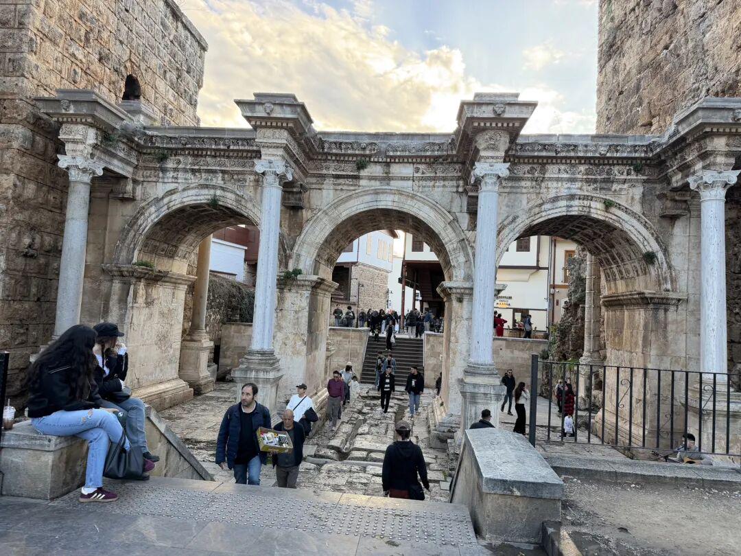 踏入老城,最先遇见的便是哈德良门。这座公元130年为罗马皇帝哈德良到访而建的凯旋门,由三座精美的大理石拱门组成,科林斯柱式的雕刻历经千年风雨依旧清晰。石缝里藏着时光的痕迹,城门两侧残存的古城墙,仿佛还能听见当年车马驶过的声响,一步跨进,便从现代都市坠入千年之前。