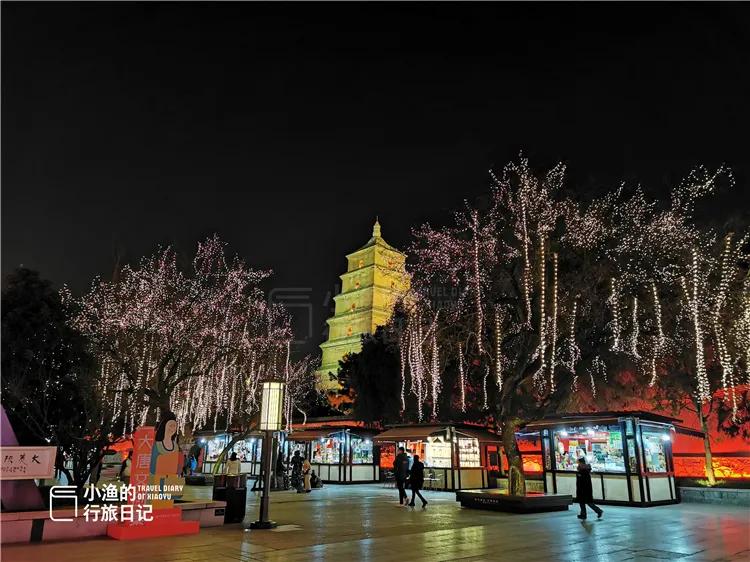璀璨的灯光,映着千年大雁塔的轮廓,也勾勒出仿唐建筑的古朴线条。你别说,游走其中,还真有种穿越回唐朝的恍惚。